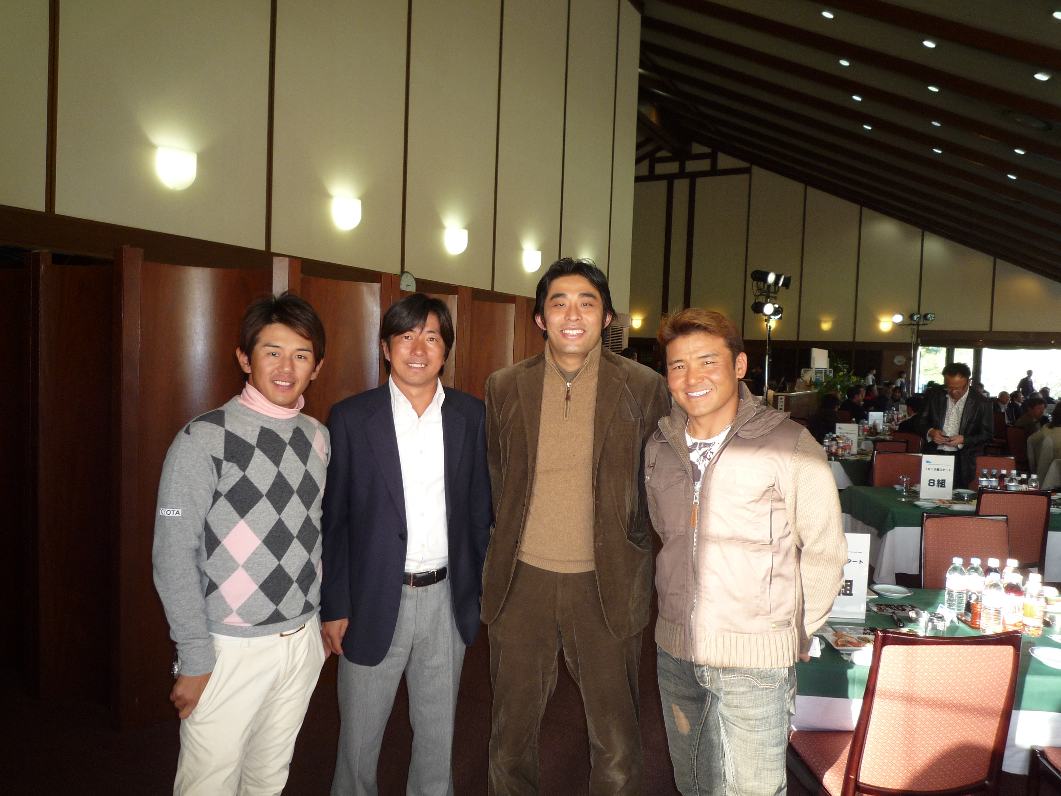 表彰式では深堀プロが司会をして、丸山プロ、片山プロ、鈴木亨プロ と対談して、面白かったです。丸山プロの優勝までの苦労や 片山プロはマスターズ4位からの悩みとか、いろいろと話しをきけてよかった。 藤島プロにはいろいろと教えてもらいました。 片山プロはプレー中、彼のいろいろもっているグッズ(練習道具など)を見せてもらって面白かったです。 深堀プロや丸山プロ、近藤プロともお話できてよかったです(ゴルフの話というよりかは、私の仕事の話とかしていました)。